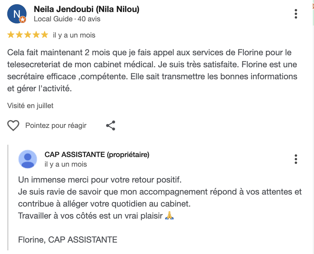 - Accueil téléphonique externalisé : transmission des informations essentielles à vos patents, gestion des appels entrants, prises de messages, ou redirection vers vous selon vos consignes.